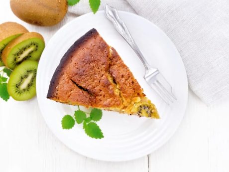 Kiwi is a small, oval-shaped fruit with a brown fuzzy exterior and vibrant green interior.